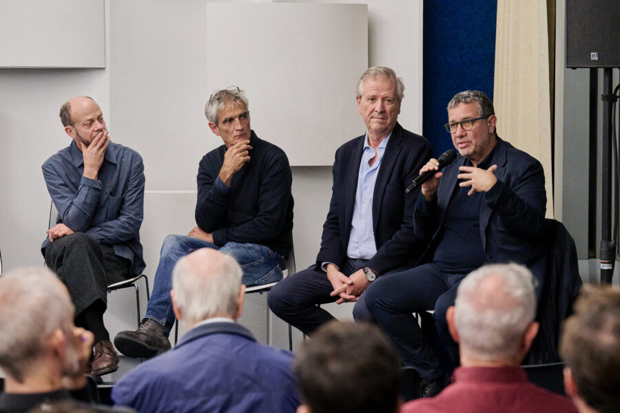 Jean-Paul Jaccaud participe à une table ronde avec Séverin Guelpa, Héloise Gailing et Marie Velardi lors de la soirée MATZA au pavillon Sicli.